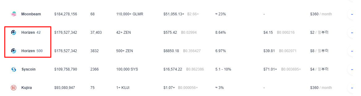 | 3줄 요약 Secure Node : 42 ZEN (수익률 : 6.97%) Super Node : 500 ZEN (수익률 :8.64%) 월 호스팅 비용 각$2.5 / $10 (설치비 별도) |