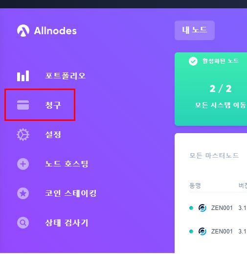 Allnode에 로그인하여 카드모양의 청구를 눌러주면..