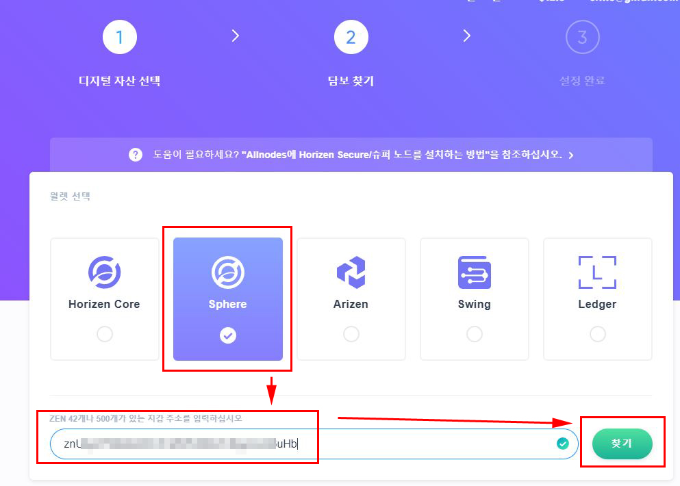 스피어를 선택해주고 코인이 있는 지갑주소를 입력한 후 찾기를 누르면..