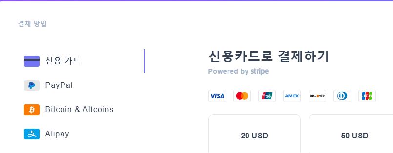 신용카드, paypal, 알트코인등으로도 결제가 가능하니 가능한 방식으로 결제를 해주자.