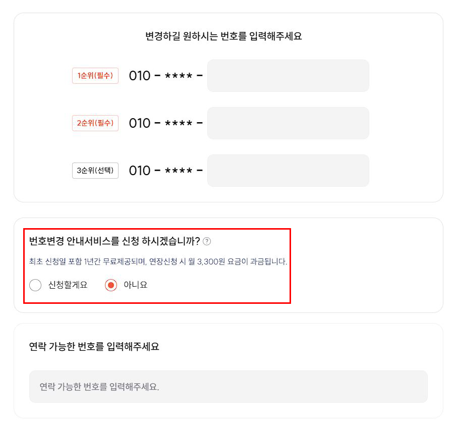 변경할 뒷번호를 1순위, 2순위까지 작성을 해주고