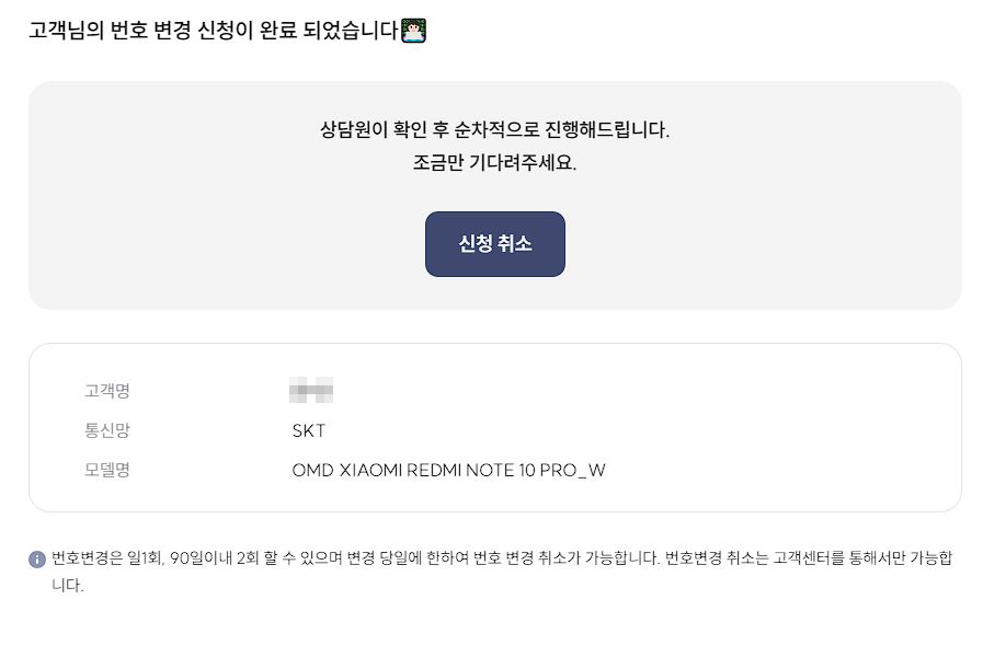 상담원을 통해 원하는 전화번호를 안내받고 선택하면 전화번호 변경은 끝나게 된다.