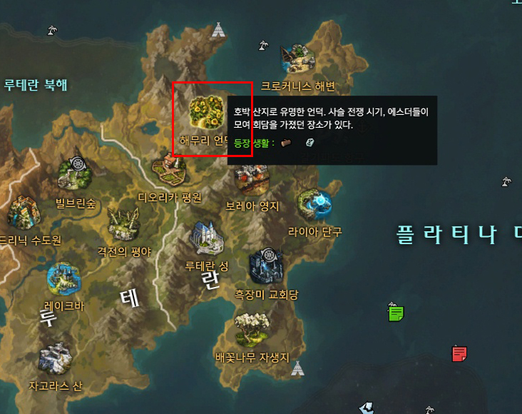 루테란 동부의 해무리 언덕 북쪽으로 가야한다.